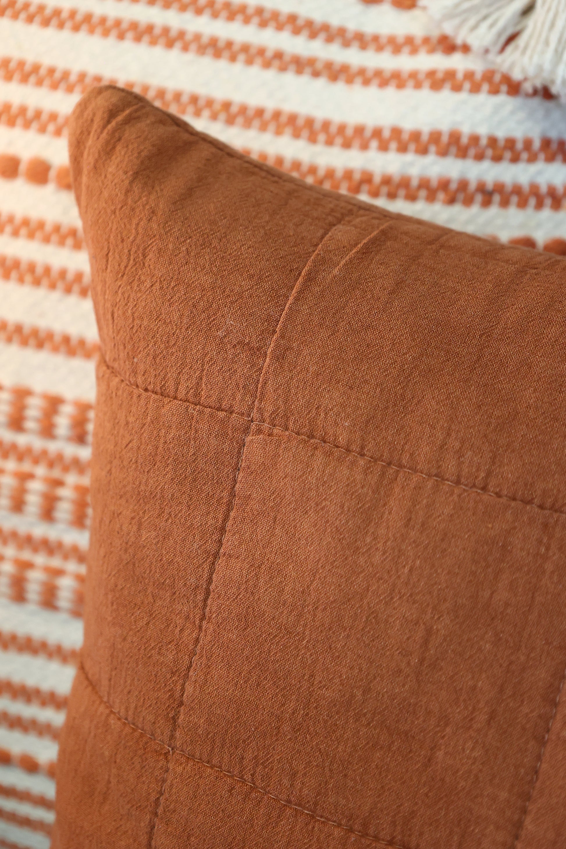 Quiltet pudebetræk fra Chic Antique i en smuk og varm terracotta farve. Pudebetrækket er stenvasket så det får det helt rigtige vintage udtryk med det slidte look.