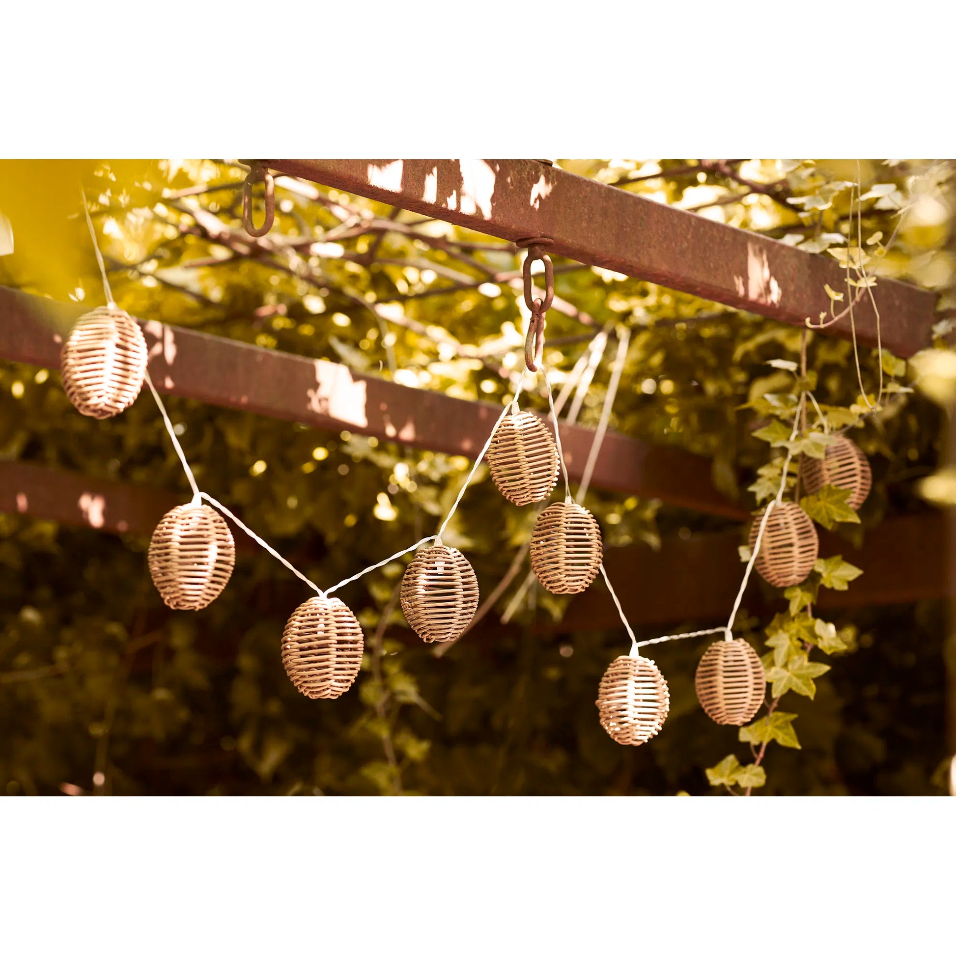 Carlisle LED Lyskæde er det perfekte valg til at tilføre varme og atmosfære til dit hjem eller overdækkede udendørsområder. De dekorative, små ovale skærme i naturfarvet polyrattan giver et blødt og behageligt lys, der skaber en afslappet og indbydende belysning.
