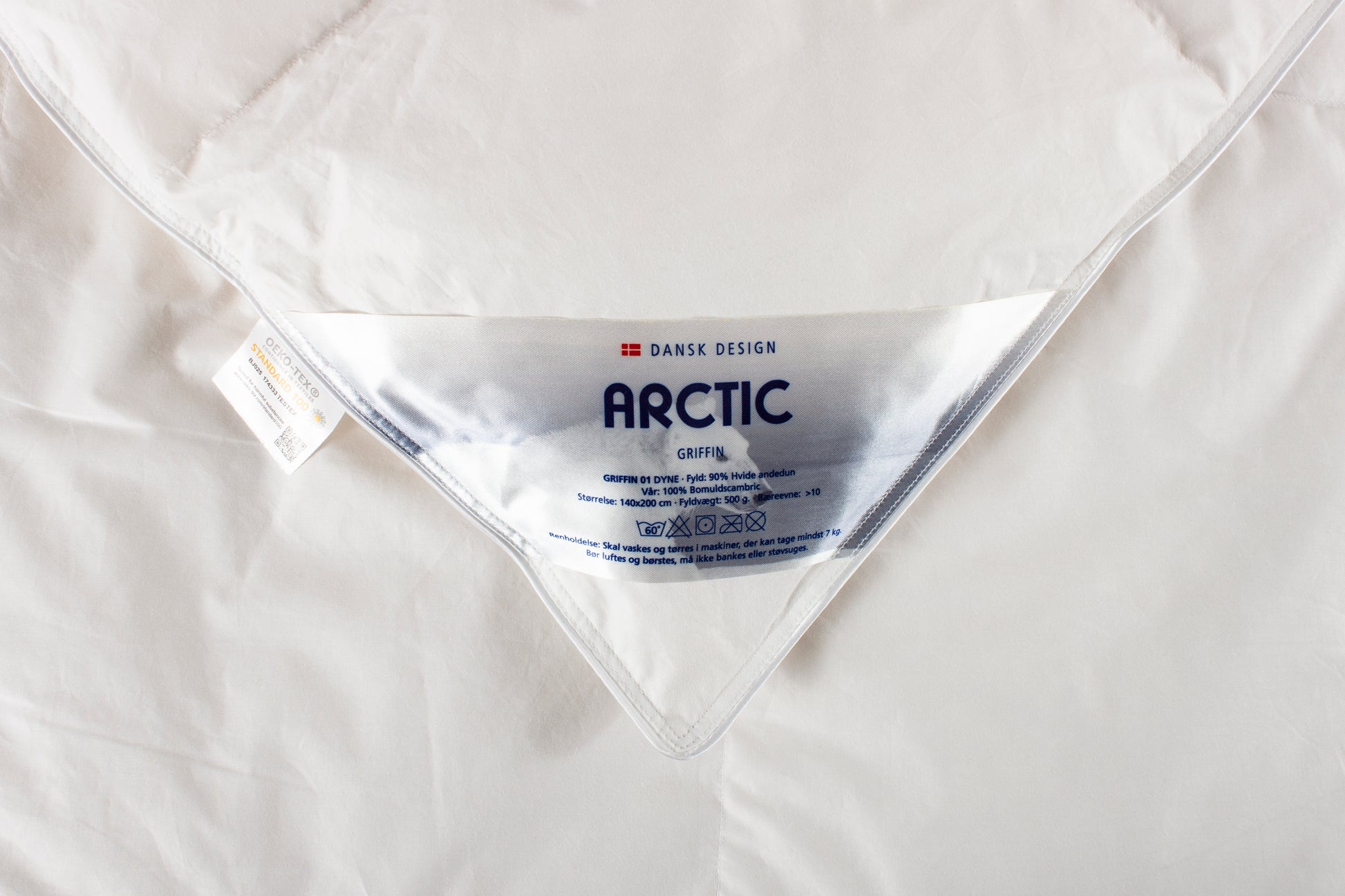 Sov trygt og behageligt året rundt med GRIFFIN helårsdynen fra ARCTIC. Dynen er fyldt med 90% hvide andedun, der gør dynen let, blød og dejlig varm.