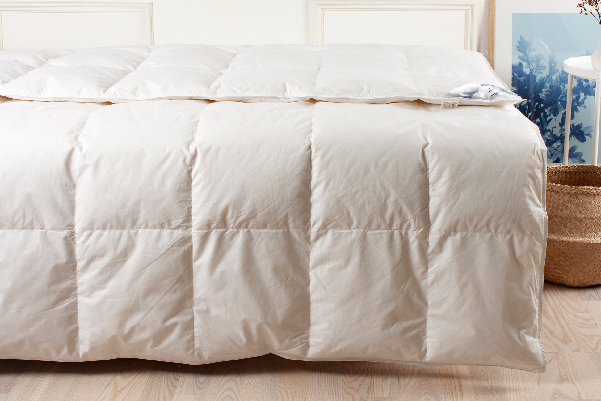 De fine og bløde dun er syet ind i et ekstra fint og blødt bomuldsvår, der gør dynen behagelig mod huden og sikrer god åndbarhed.