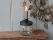 Her har du mulighed for at lave en lille fin dekoration inde i glasbeholderen. Lysestagen kunne være fin med strandsand og muslingeskaller, grankogler eller tørrede blomster. Låget kunne også dekoreres med fx. et bånd eller snor.