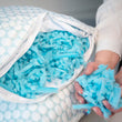 Puden leveres i en praktisk stoftaske, som gør det nemt at opbevare hovedpuden, når den ikke er i brug.