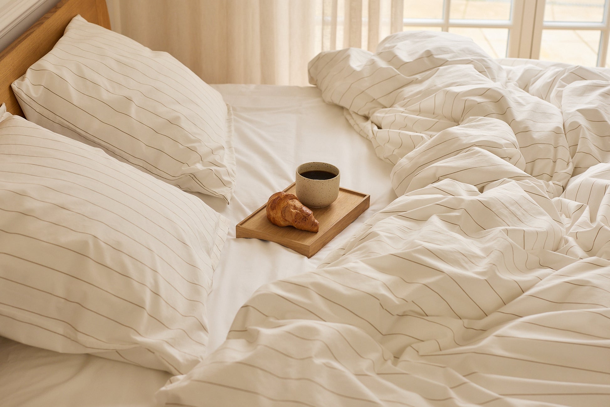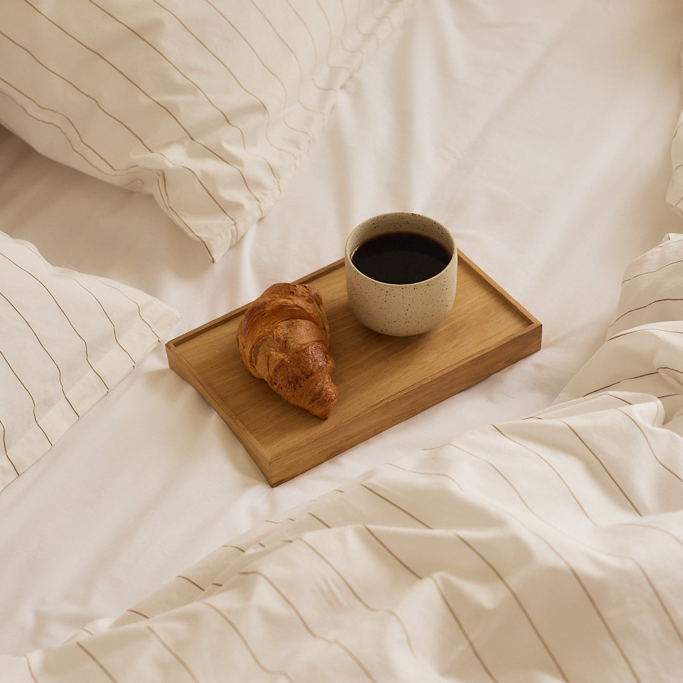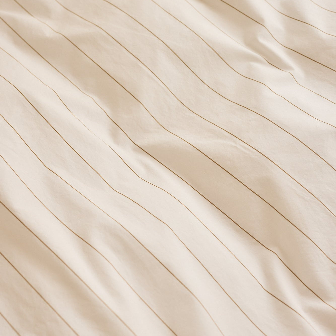 Forkæl soveværelset med Bristol sengelinned fra Nordisk Tekstil, fremstillet af 100% økologisk bomuld i en lækker, tæt percalevævning. Det giver et blødt, lækkert og mat udtryk, som føles luksuriøst mod huden. Det stilrene design med de tynde striber skaber et elegant og roligt look i dit soveværelse.
