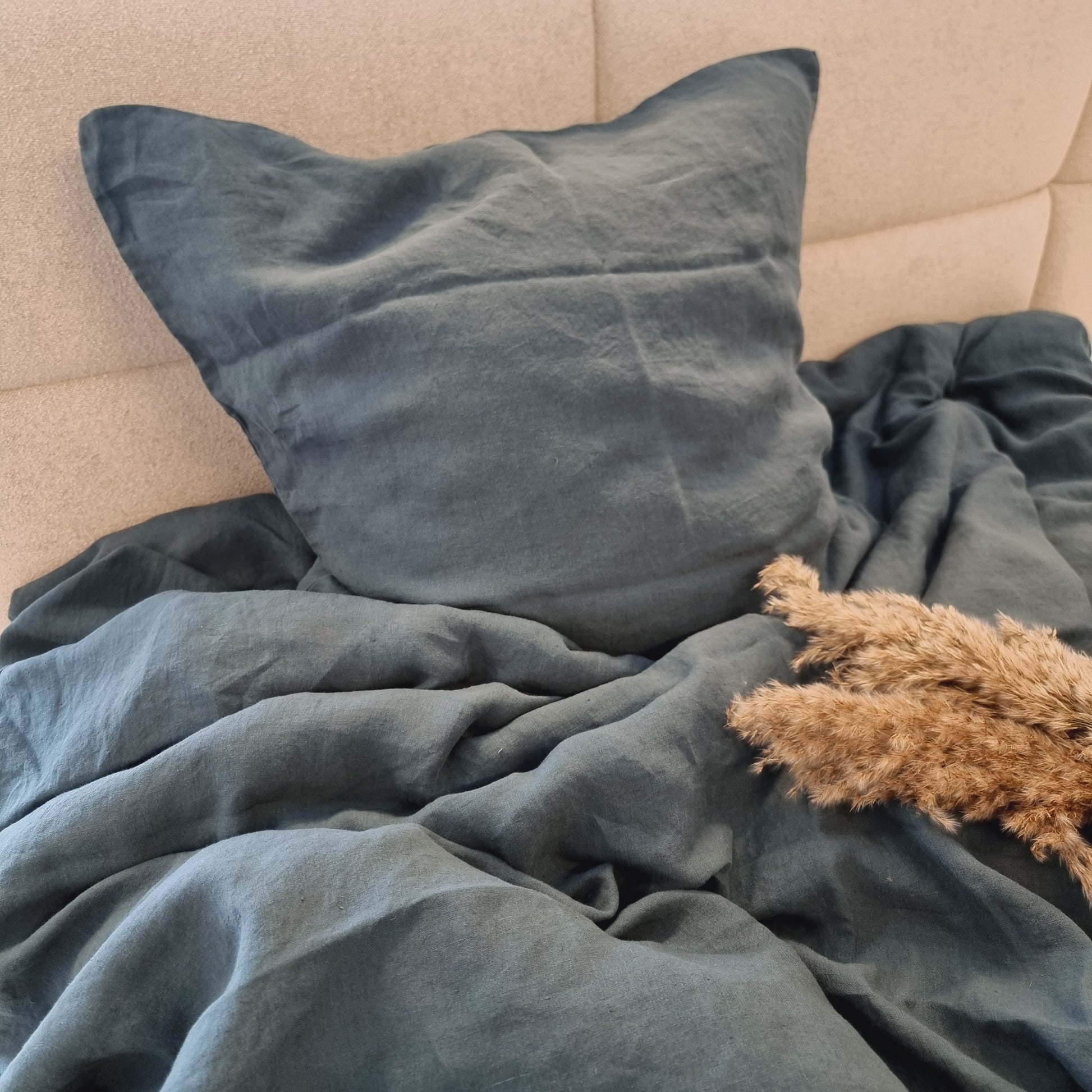Sengetøj i vasket hør 140x200 cm - Petrol blå