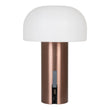 Skab en hyggelig atmosfære både indendørs og udendørs med denne smukke Soham lampe med hvid skærm og kobberfarvet bund.